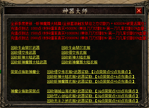 全新更新荣誉点爆率!荣誉点直接2大陆所有怪物有爆!全面减低荣誉点消费!