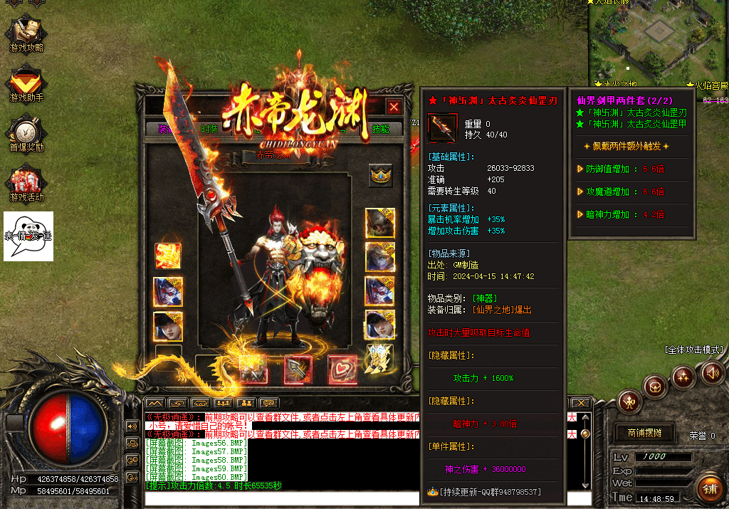 增加10倍刷怪!无限爆率!全屏切割(无限爽)!新增天命神器系统!PK无限爽!